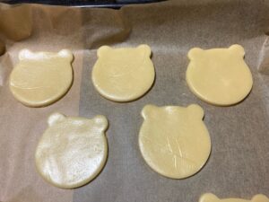 冷蔵庫で休ませてから、くまちゃん型で型抜き。