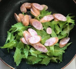 - フライパンで軽く炒め、塩・こしょうで味付けします。