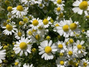 ときおり風もふき、今はカモミールも花盛り。いい気持ちです。