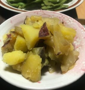 ちょっと傷ついてしまったお芋、リンゴと一緒に煮ました。