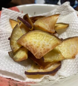 厚めのポテトチップスみたいに、カリッと甘く仕上がります。