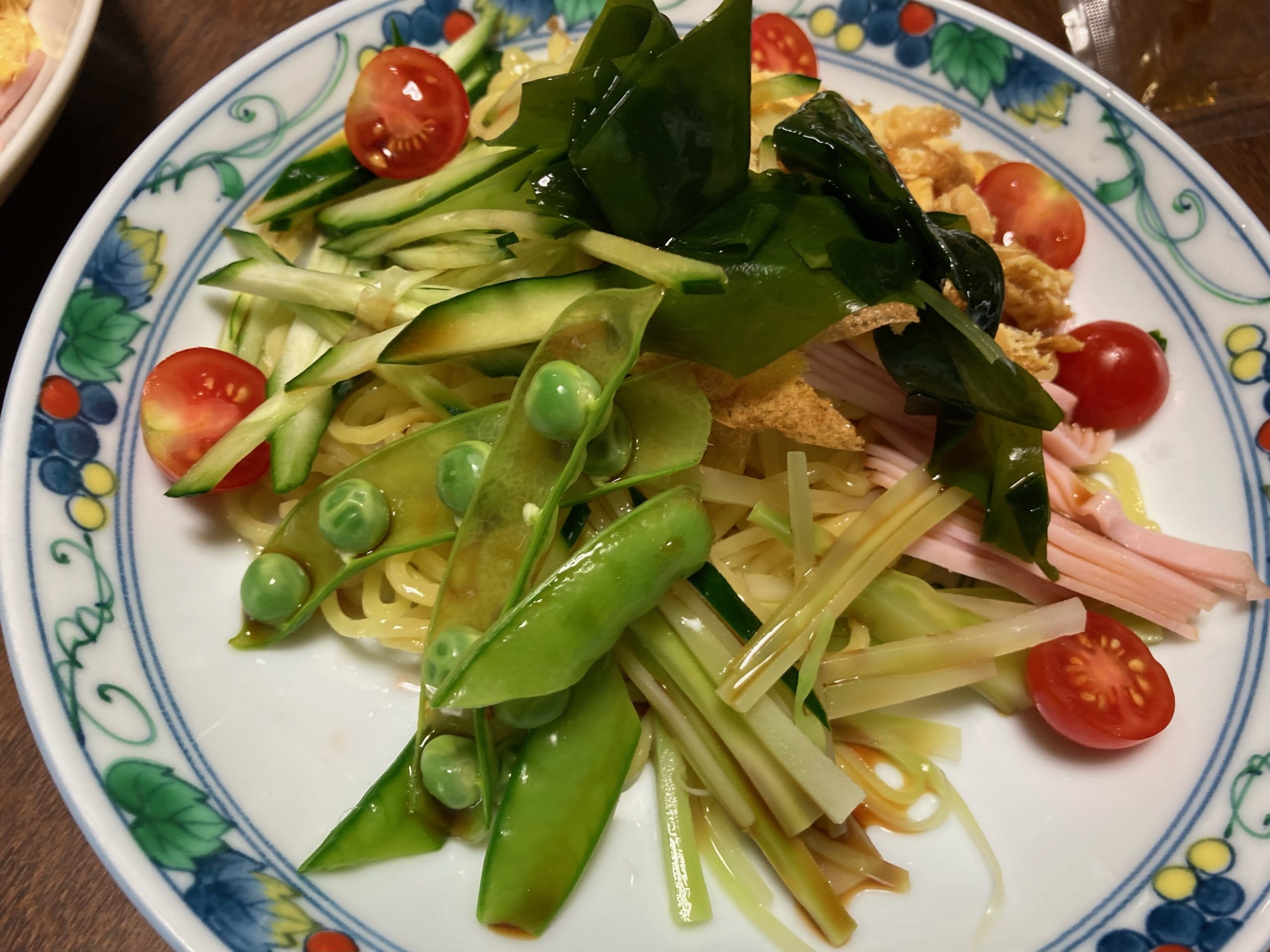 野菜いっぱい冷やし中華・新じゃがのバター風・ヨーグルト