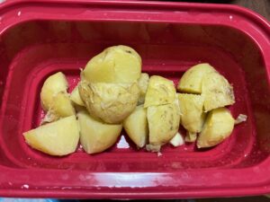 加熱が終わったら、食べやすい大きさにナイフを入れます。お好みでバターをかけて。