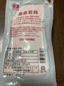 鶏肉はコープデリで購入した冷凍の鶏肉。